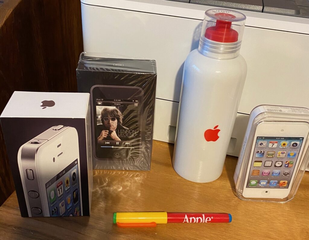 The image below shows a few pieces of Apple history I’ve held onto for decades: a ceramic Apple bottle I’ve had for nearly 30 years, a plastic Apple pen handed out at events, my first iPhone, and two iPods. Small objects, perhaps. But sometimes the smallest souvenirs carry the longest stories.